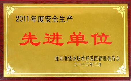 近日,在連云港經濟技術開發區管委會召開的2012年全區安全生產工作會議上,中金瑪泰被開發區管委會授予2011年度安全生產先進單位稱號。
