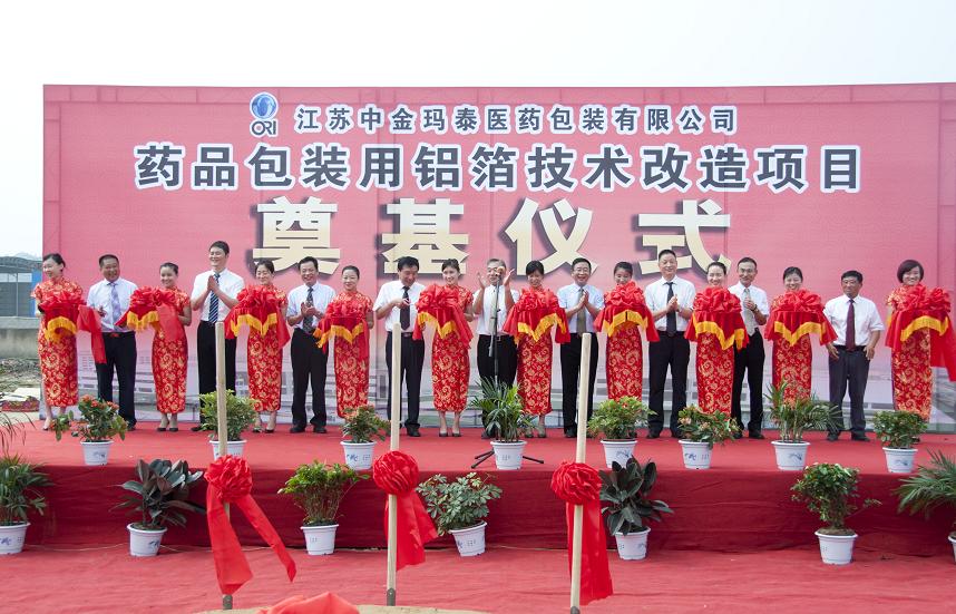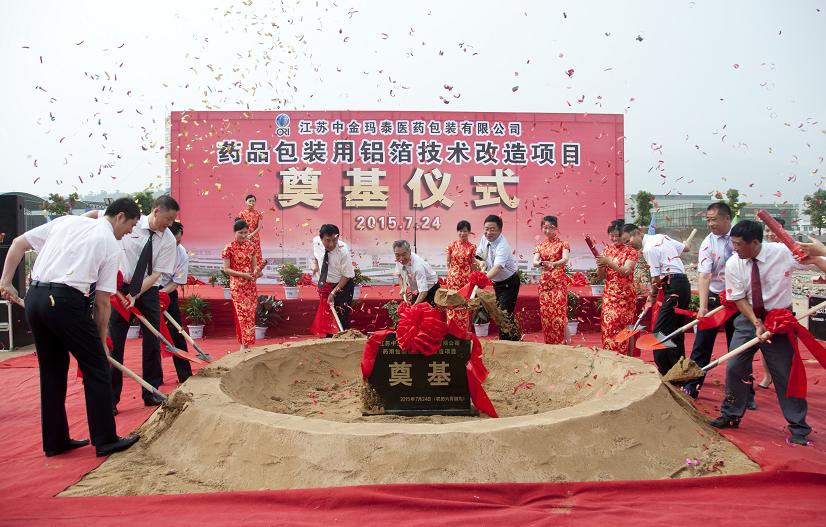 2015724日,江蘇中金瑪泰醫藥包裝有限公司藥用包裝鋁箔技改項目奠基儀式在新廠區舉行,這標志著新工廠技改項目的建設正式拉開了帷幕。