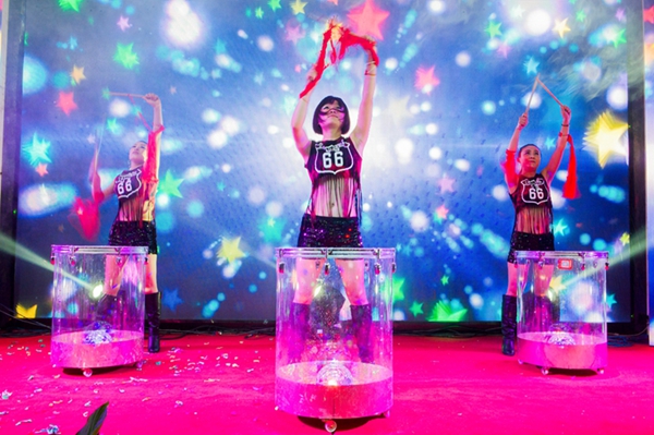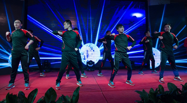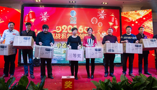 年會(huì)的文藝演出部分,在一工廠員工表演的活力四射、激情洋溢的開場(chǎng)舞中拉開了帷幕。專業(yè)的舞臺(tái)效果和色彩絢麗的燈光讓本場(chǎng)晚會(huì)在往年的基礎(chǔ)上提升到一個(gè)新的高度。晚會(huì)節(jié)目更是豐富多彩,各具特色,融合了古典時(shí)尚、民族流行等元素,歌舞、小品、相聲輪番上演,充分展示了中金瑪泰員工優(yōu)秀的人文素養(yǎng)和健康向上的精神風(fēng)貌。 來(lái)自世紀(jì)緣大酒店的姑娘們頭戴銀飾,身著艷麗的服裝,跳著活潑歡快的侗族舞蹈《多嘎多耶》,讓觀眾們眼前一亮。技術(shù)質(zhì)量部帶來(lái)的《舞舞相約》,一個(gè)個(gè)撐著油紙傘款款走來(lái)的姑娘們,讓觀眾仿佛置身于淡墨淺韻的江南水鄉(xiāng),那曼妙動(dòng)人、搖曳生姿的孔雀舞更是驚艷四座。二工廠帶來(lái)的《鼓舞2016》,帥哥美女們頭戴五彩花環(huán),穿著飄揚(yáng)的草裙,用火辣多情的草裙舞贏得了臺(tái)下觀眾的陣陣歡呼。最振奮人心的莫過于集聲、光、水景為一體的水鼓舞, 氣勢(shì)恢宏,充分演繹出燦爛振奮的舞風(fēng)和鼓韻。生產(chǎn)計(jì)劃部那充滿異域風(fēng)情的新疆舞《掀起你的蓋頭來(lái)》以其艷麗的服飾、歡快的旋律、大膽的反串以及場(chǎng)上場(chǎng)下的精彩互動(dòng),更是將全場(chǎng)觀眾的熱情點(diǎn)燃。小品《考核》、《偶像劇》以及相聲《港城文化人》也是引爆全場(chǎng),喜劇夸張的表演,幽默詼諧,笑料百出,引得觀眾掌聲連連,笑聲不斷。 精彩的節(jié)目還在繼續(xù)上演,臺(tái)上臺(tái)下已成為一片歡樂的海洋,抽獎(jiǎng)環(huán)節(jié)中,銀幕上滾動(dòng)的新年寄語(yǔ)不僅是晚會(huì)的一大亮點(diǎn),更是廣大員工對(duì)新一年的憧憬和美好祝愿。除了精彩絕倫的文藝演出,最激動(dòng)人心的莫過于年會(huì)上的抽獎(jiǎng)和微信搶紅包活動(dòng)了,一輪輪抽獎(jiǎng)及微信搶紅包活動(dòng)不斷將年會(huì)的氣氛推向高潮。 在酒會(huì)活動(dòng)中,櫻井董事長(zhǎng)、徐總經(jīng)理攜公司高層領(lǐng)導(dǎo)向員工一一敬酒,并送上紅包,感謝各位員工為公司發(fā)展所付出的努力。新年伊始,讓我們帶著對(duì)春的向往和對(duì)公司的祝福,凝聚力量,整裝待發(fā),共同攜手邁入2016年的全新里程!