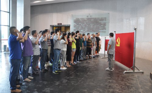 沙家浜革命紀(jì)念館是為紀(jì)念和弘揚(yáng)沙家浜軍民光榮傳統(tǒng)而建立的教育展覽館,再現(xiàn)了當(dāng)年沙家浜抗日軍民魚水情深,共同抗敵的感人事跡。7月正是江南多雨季節(jié),活動當(dāng)天突降暴雨,大家撐著傘,先后參觀了革命傳統(tǒng)教育區(qū)、紅石民俗文化村、國防教育園等,盡管濕透了衣服和鞋子,黨員們仍認(rèn)真傾聽講解員對沙家浜革命根據(jù)地抗日斗爭的歷史講解,一幅幅珍貴的抗戰(zhàn)歷史照片,一件件“江抗”軍人用過的物品,再現(xiàn)了當(dāng)年沙家浜新四軍和人民群眾團(tuán)結(jié)一致、頑強(qiáng)抗日的感人事跡和光輝歷程,共同感受了當(dāng)年蘆葦蕩里的革命風(fēng)云,體會革命先烈英勇不屈的革命精神,大家深受鼓舞和熏陶。在沙家浜革命歷史紀(jì)念館前,全體黨員重溫入黨誓詞,深切緬懷革命先烈,升華革命教育洗禮,立志牢記自身肩負(fù)的責(zé)任和使命,發(fā)揚(yáng)黨的優(yōu)良傳統(tǒng)作風(fēng),結(jié)合本職,凝心聚力、真抓實(shí)干,勇當(dāng)社會主義發(fā)展的排頭兵和主力軍。