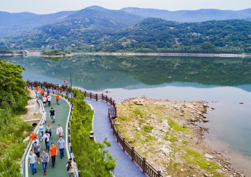 宿城水庫風景區三面環山,一面向海,是黃海之濱少見的原生態游覽佳境,素有“世外桃源”之美譽。景區內綠樹蒼翠,景物清幽,群山環繞中,一池碧水倒映山林,與藍天白云交相輝映,猶如一幅清新明麗的水墨畫卷。在這個遠離城市喧囂的世外桃源,大家邊走邊聊,愜意而行,歡快的笑語,攜手的鼓勵,奮力的角逐,暢快的汗水,以及尋寶活動帶來的樂趣,一并揮灑在這青山碧水間。經過一個多小時的堅持和努力,大家陸續抵達了終點,完成了比賽。