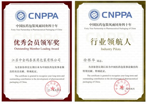中金瑪泰榮獲中國醫(yī)藥包裝協(xié)會頒發(fā)“優(yōu)秀會員領(lǐng)軍獎” 徐根華總經(jīng)理獲個人獎最高殊榮——“行業(yè)領(lǐng)航人”